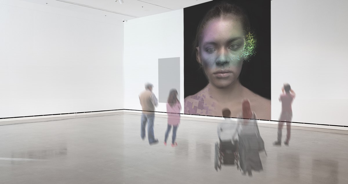 portraits of over 5,000 people into a video interactive work expressing both our individuality and our plurality. This installation opens